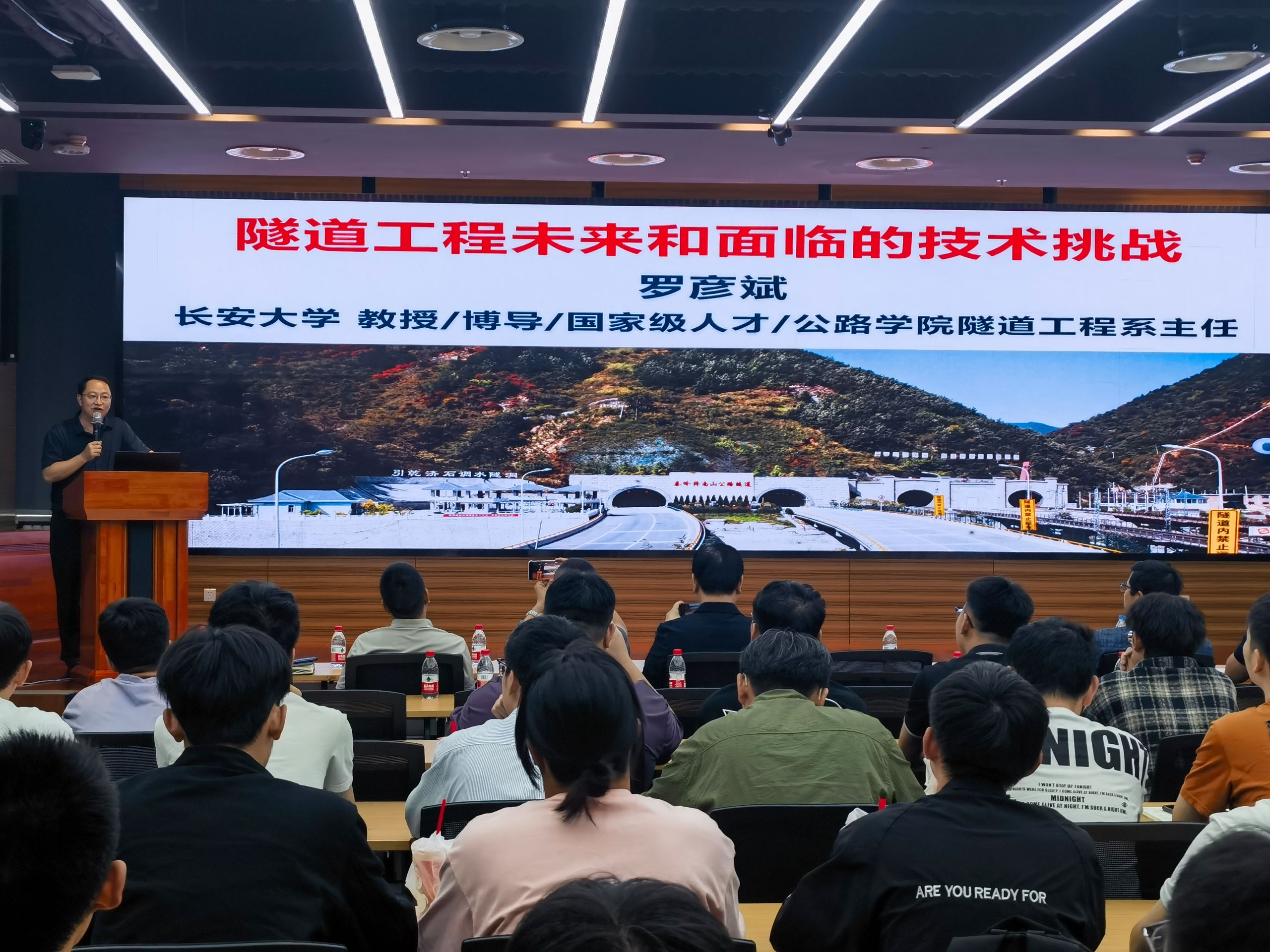 罗彦斌教授以“隧道工程未来和面临的技术挑战”为题,重点围绕隧道及地下工程的未来与现状、隧道工程专业学生就业如何,为何选择隧道工程专业及未来隧道养护及检测设备研发情况做了介绍,让在场师生直观了解领域前沿。互动环节中,罗彦斌教授针对隧道与地下专业建设、行业人才培养、学生专业信心树立等问题,与师生深入交流,提出兼具前瞻性与实用性的建议,为学院相关工作拓宽思路。