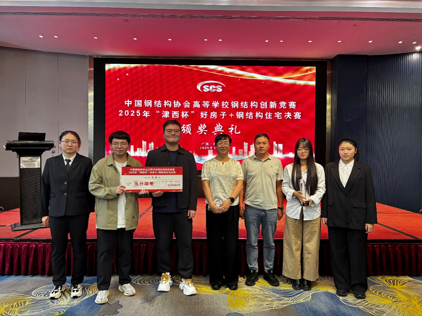 10月13日,由中国钢结构协会主办的“津西杯”高等学校钢结构创新竞赛——2025“好房子+钢结构住宅”专题决赛在广西南宁市圆满落幕。我校代表队凭借扎实的专业功底、创新的设计方案与出色的现场展示,成功斩获全国二等奖。