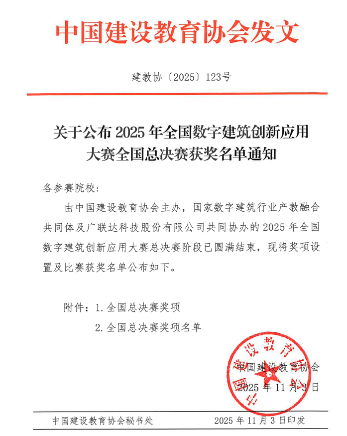 2025年全国数字建筑创新应用大赛全国总决赛圆满落幕。本次大赛吸引了来自全国数百所高校的数千支队伍参赛。我校有6支队伍参加了选拔赛和总决赛。