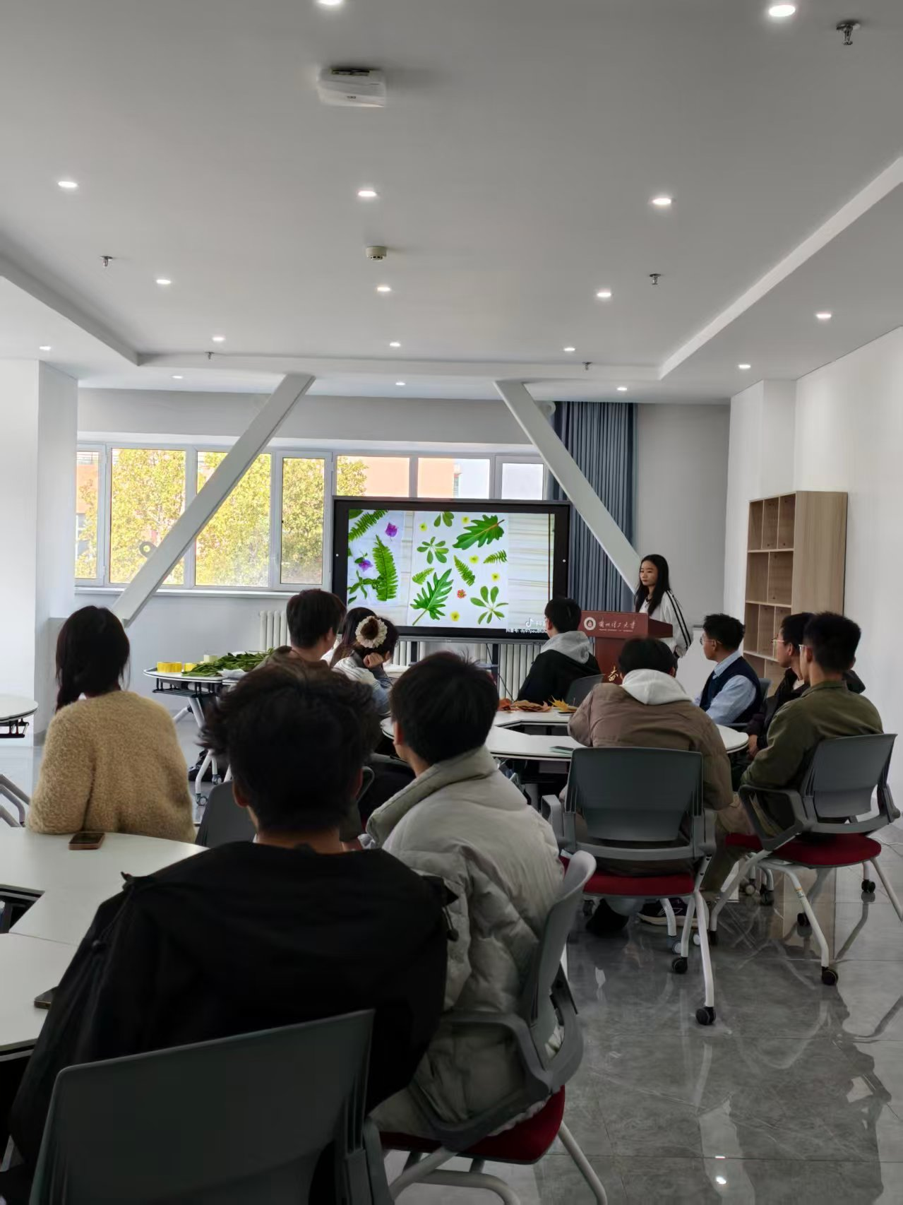 活动现场,金悦老师首先向研究生新生介绍了植物拓染的历史渊源,以锤击拓印的传统手法,将花草的形态与色彩“复刻”在布料上,这种“敲敲打打”的创作过程,本身就是一种情绪的宣泄与压力的释放。大家手握小锤,在布料上轻轻捶打植物叶片,当翠绿的叶痕、明黄的花瓣轮廓在布面上慢慢浮现时,不少同学露出惊喜的笑容。同学们在沉浸式体验中触摸自然、释放情绪,在互帮互助的创作过程中打破隔阂、凝聚情谊,为初启的研途注入温暖的心灵力量。