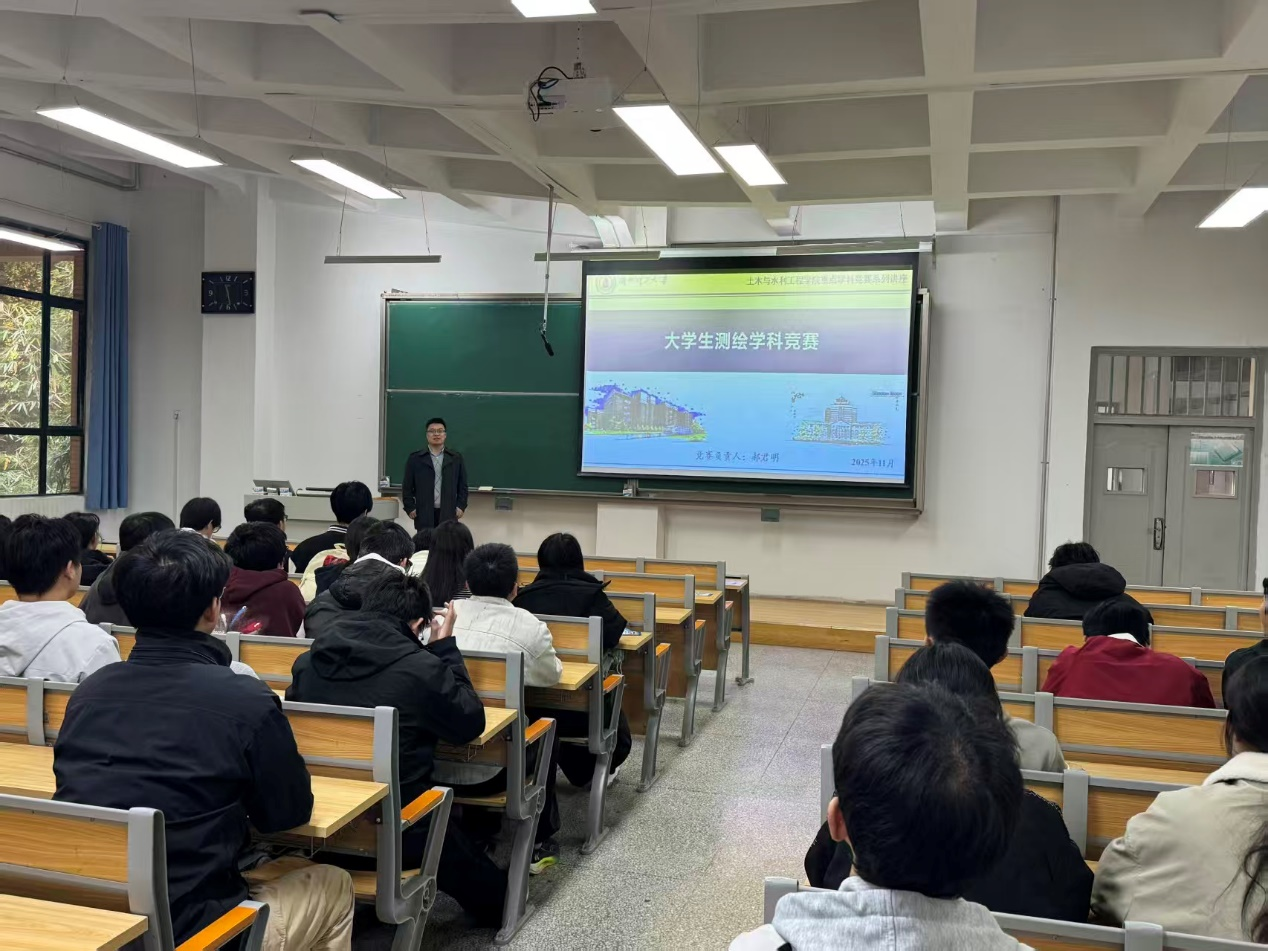 11月13日,土木与水利工程学院在彭家坪校区集贤楼107教室举办重点学科竞赛系列讲座第四讲之大学生测绘学科竞赛专题讲座。测绘工程专业150余名同学参加,郝君明老师担任主讲。