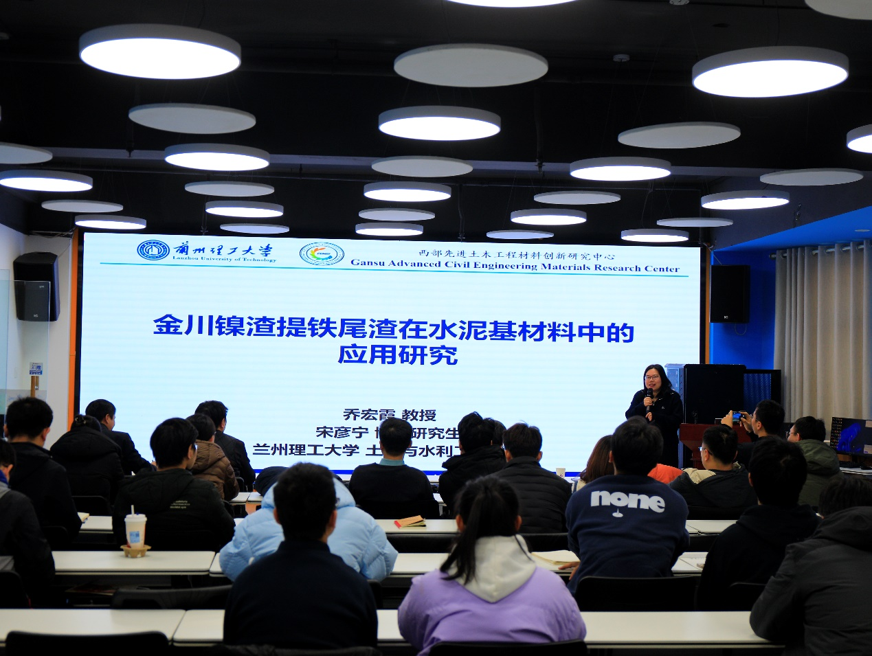 在报告环节,浙江大学“百人计划”研究员、国家高层次青年人才曹纪兴博士以“数字孪生驱动的复杂结构状态监测与风险评估理论与方法”为题,结合个人科研实践与技术应用,分享了其研究进展与思考。中组部“西部之光”访问学者乔宏霞教授作了题为“金川镍渣提铁尾渣在水泥基材料中的应用研究”的报告,从团队建设、科研历程及土木工程材料实际应用等方面展开交流。首批“中国科协青年人才托举工程博士生专项计划”主持人、青年教师柳鸿博博士以“水泥土复合管桩水平动力特性研究”为主题,系统介绍了研究背景、理论方法及工程应用前景。现场交流积极,气氛融洽。