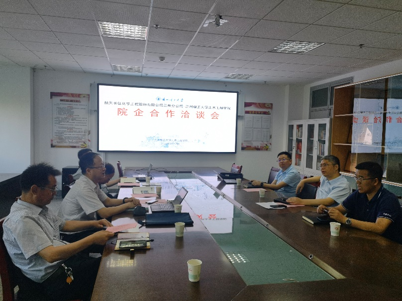 2022年6月17日上午,航天长征化学工程股份有限公司兰州分公司总经理王佳佳、副总经理董宝春、综合部部长刘佳林一行莅临土木工程学院协商院企合作事宜。土木工程学院院长王文达教授、杜永峰教授、副院长殷占忠教授、李万润教授、石油化工学院副书记张飞龙以及建筑工程系主任吴长副教授和副主任王永胜副教授出席洽谈会。会议由王文达主持。