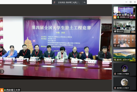 全国大学生岩土工程竞赛每两年举办一次,是岩土工程领域规模最大,规格最高的竞赛活动,经过土力学教学研讨会学术委员会专家组对各高校(入选土木工程国家一流专业或通过住建部土木工程专业评估(认证)的高校)所提交的竞赛设计报告进行双盲评审,从54支队伍中共初选出了32支队伍参与决赛,最终浙江大学、西安理工大学、武汉大学及兰州理工大学等代表队进入决赛。鉴于近期各地疫情的紧张形势,经第四届全国大学生岩土工程竞赛主办方与组织委员会研究决定,竞赛采用线上腾讯会议方式举行。