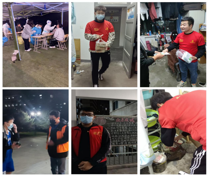 土木学院院领导走访学生宿舍,深入了解宿舍疫情防控落实工作和线上教学学习情况;教工119名党员积极投身疫情防控党员先锋岗,在小区门口测温、查验健康码、行程卡、工作证明、教工卡或出入证;4名老师担任网格管理员,通过微信群、走访住户等方式进行加强疫情防控的宣传和传达要求;6名老师在核酸采样工作中积极争当志愿者。全体学生党员也积极投身到疫情防控工作中来,他们从早上7点到晚上10点在宿舍楼下检查学生的健康码,督促学生测体温;主动走进学生宿舍宣传疫情防控的要求;在核酸检测中积极充当志愿者,帮助工作人员扫码,帮助老师维持秩序;为同学们发放口罩、督查同学线上上课情况、给同班同宿舍同学带饭、带垃圾下楼,到操场篮球场督促学生不扎堆、不聚集,有效的减少了人员聚集。