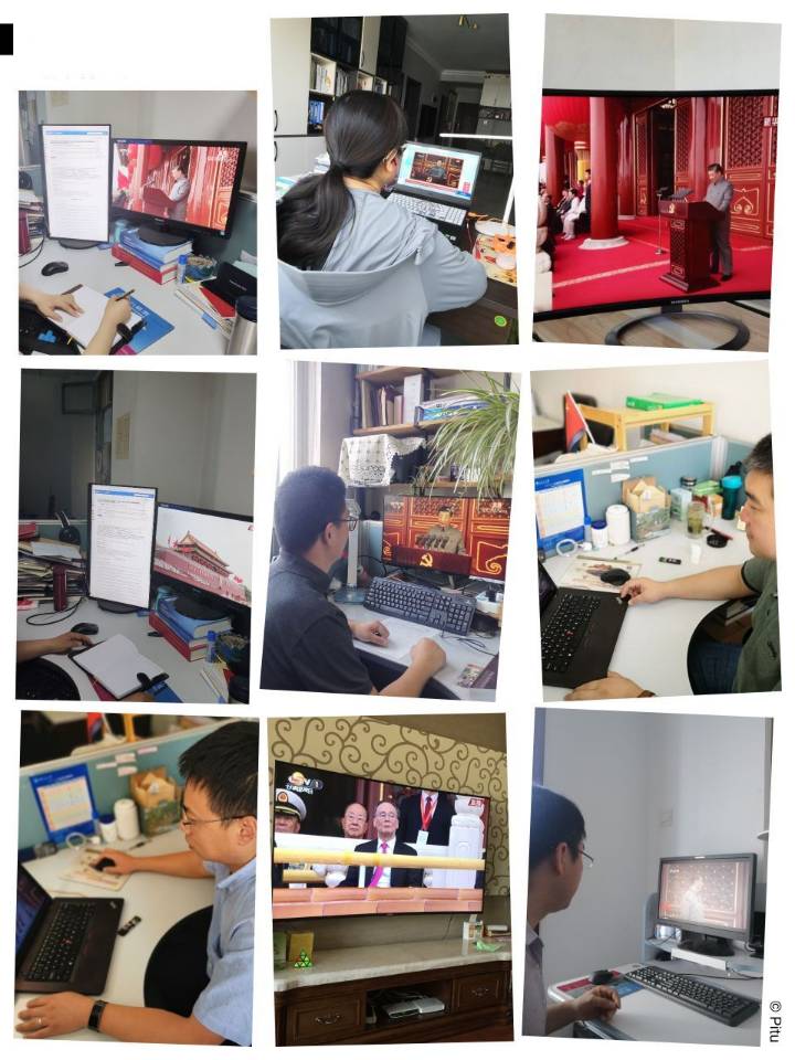 学院教工通过各种方式观看直播