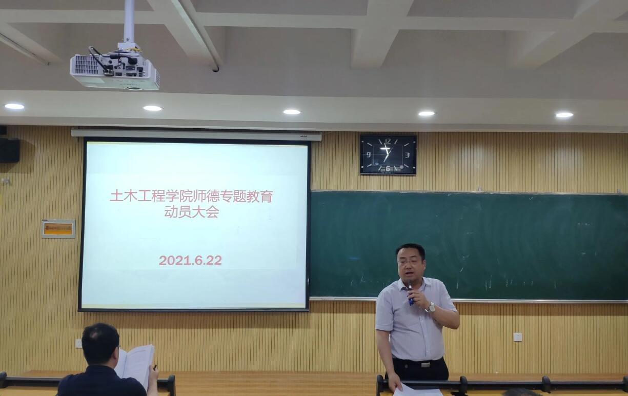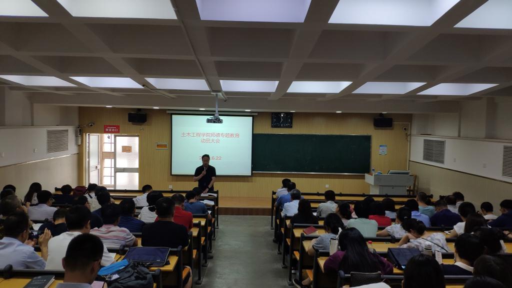 2021年6月22日下午,土木学院在兰工坪校区崇理楼204教室召开师德专题教育动员大会。会议由学院党委田治学书记主持,院领导、学院老师130多人参加了会议。