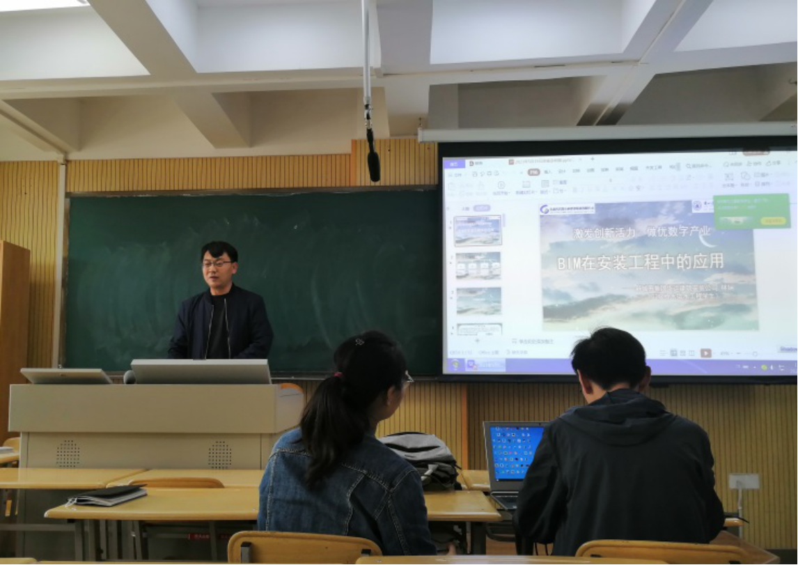 2021年5月19日下午。由土木工程学院组织,给排水科学与工程系开展的“新工科背景下给排水创新人才培养系列之一”在兰工坪校区1南103教室举行。土木工程学院副院长周凤玺致开幕词,给排水科学与工程系主任王亚军主持。两位专家分别做了题为“关于BIM在安装工程中的应用”以及“BIM在建筑工程项目中的案例分享”的精彩报告,详细为学生介绍了BIM在房建项目中的安装工程建模工作,以及BIM在整个建筑项目全生命周期的具体应用及实际使用意义。本次会议极大的激发了学生对BIM的学习兴趣及从事本行业的热强。虚拟仿真模块以形象的数字化模型介绍了建筑项目的施工安装过程,其精细化设计及施工过程再一次使同学们感受到工匠精神及榜样的力量。