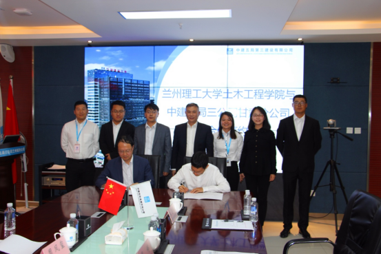 5月21日,土木工程学院与中建五局三公司甘肃分公司举行校企合作协议签约暨揭牌仪式。院长王文达教授、副院长周风玺教授、建筑工程系吴长副主任,中建五局三公司甘肃分公司总工程师林景祥、副总经理刘兆兰、办公室主任周婷、项目经理李明阳及我校校友代表设计经理朱占亮、生产经理苟彦童出席了仪式。