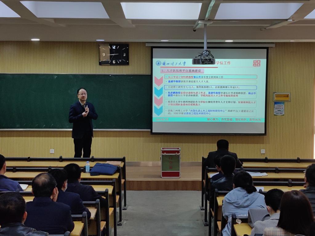 3月17日下午,土木工程学院在兰工坪校区崇理楼302 教室召开了第四届一次教职工大会,学院全体教职工参加了大会。会议由学院党委书记田治学主持。