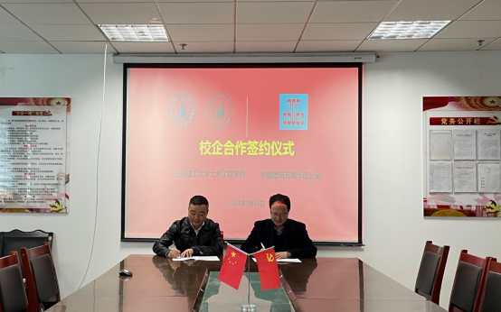 3月10日下午,土木工程学院与中国建筑五局华南公司院企合作签约仪式在学院会议室举行。土木工程学院党委书记田治学、院长王文达、副院长周凤玺、中国建筑五局华南公司粤北区域总经理张泽、深圳分公司东部区域副总经理徐义、广州分公司清远联合党支部书记、清远地区负责人杨睿参加签约仪式。