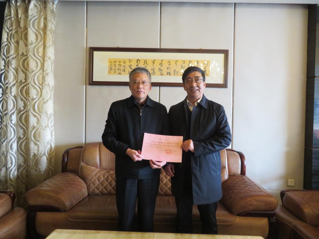 李仁年副校长为丁克伟副校长颁发了“双新”基金学术委员会委员聘书