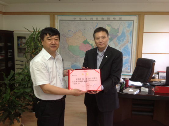 俞树荣副校长2013年为来访的倪一清教授颁发兼职教授聘书