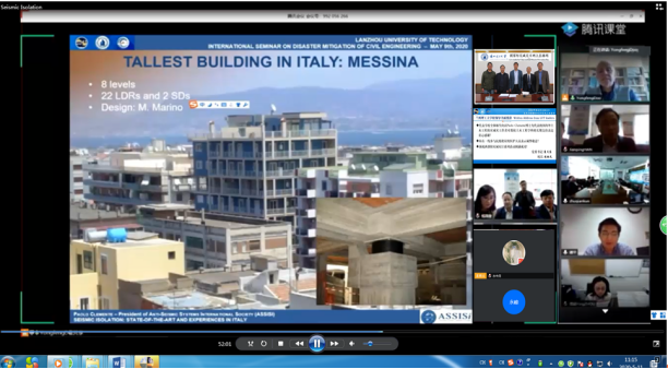 2020年5月9日,应兰州理工大学党委副书记、校长芮执元邀请,国际减震控制学会(ASSISi)主席、意大利能源环境及新技术研究院(ENEA)地震工程部门主任Paolo Clemente博士做客我校承办的2020年国家防灾减灾日土木工程国际知名专家线上报告会,标志着我校配合政府灾害应急管理部门承办的第十二个全国防灾减灾日西部地区系列科普活动正式开启。Clemente博士报告的题目是“意大利隔震研究最近进展和工程应用经验(Seismic Isolation: State-of-the-Art and Experience in Italy)”。
