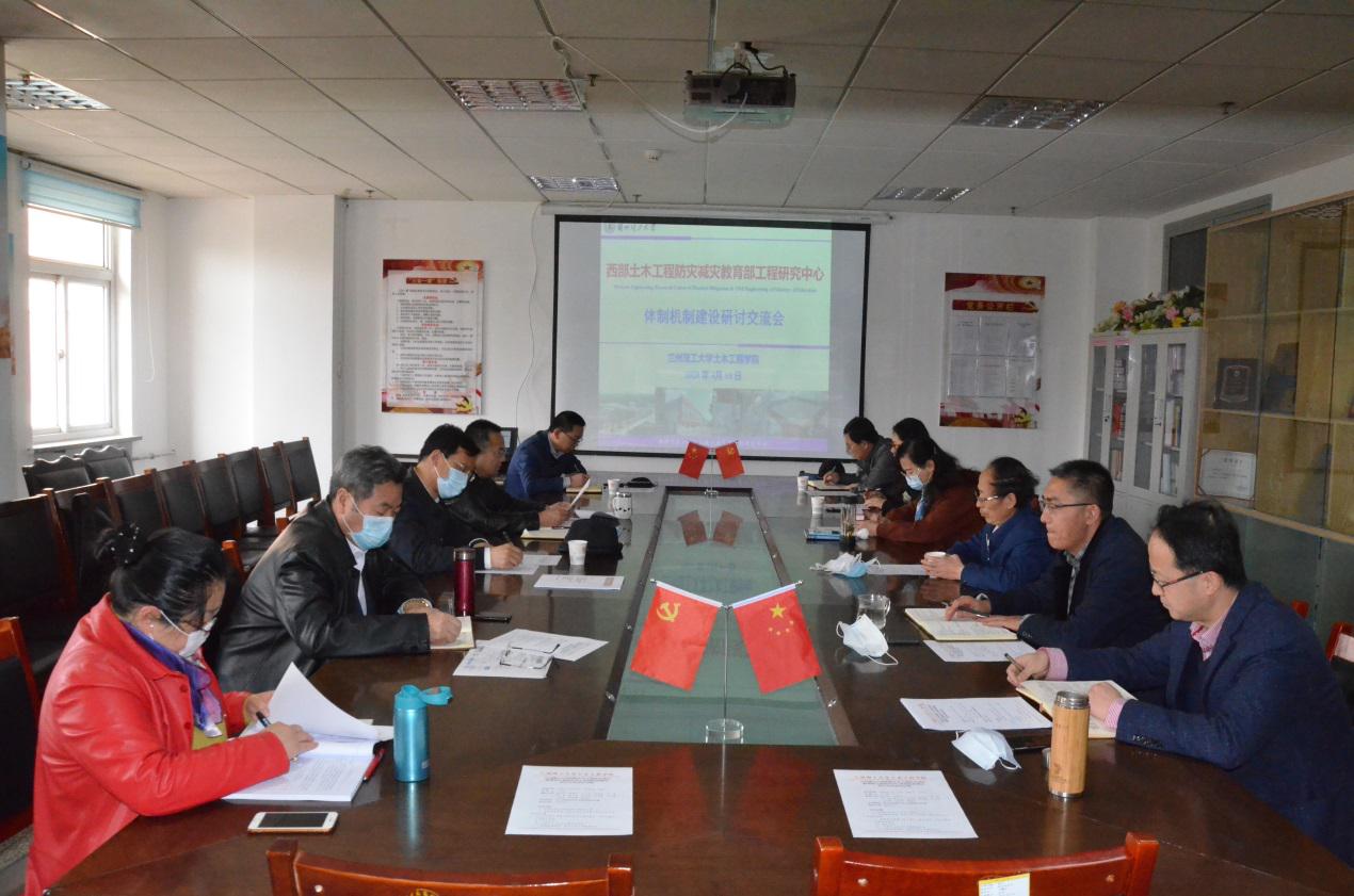2020年4月10日下午,西部土木工程防灾减灾教育部工程研究中心体制机制建设研讨交流会在兰工坪校区土木工程学院会议室召开,学校党委常委、副校长陈志华、西部土木工程防灾减灾教育部工程研究中心主任朱彦鹏教授、土木工程学院院长周勇、工程中心科学研究骨干杜永峰教授、王秀丽教授、王文达教授、李萍教授、乔宏霞教授、马天忠副教授、罗维刚副教授等11人参加了会议,会议由土木工程学院党委书记田治学主持。