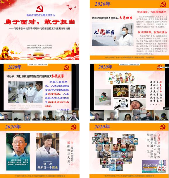 为深入学习习近平总书记关于新型冠状病毒肺炎疫情防控期间的重要讲话精神,落实学校及学院党委工作要求,2020年3月17日,土木学院建筑工程系教师第2党支部利用线上平台,开展了“新冠疫情防控”支部党课和主题党日活动,活动由在美国进行访学的支部书记李万润同志主持。