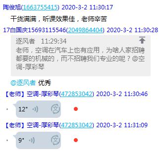 除了正常访学听课及交流学习项目外,厚彩琴老师按照学院多次召开视频会议的要求,积极准备教学工作,在自己录制课程视频的同时,汲取了交流期间国外先进的教学方法和经验,结合工程实际及学生以后的就业需求,从设计、施工、设备厂家不同角色出发,给学生提供多方位的学习资源,努力为学生提供高质量的教学服务。在上课前夕多次测试,她发现学习通网路堵塞的情况下,及时调整备用方案,采用QQ视频教学,结合在国外课堂观课交流学到的思路和方法,第一堂课从学习方法,课程授课方式,资源介绍及本课的综述,对本课程进行了整体系统的介绍,激发学生学习兴趣和求知欲望。课程资源中提供给学生的关于飞机空调知识的英文视频,在学生中引起了很好的反响。