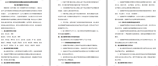 为响应教育部“停课不停教、停课不停学”的统一部署,根据学校《关于调整 2020 年春季开学时间的预通知》和教务处关于《关于新型冠状病毒感染的肺炎疫情防控期间本科教学工作安排的通知》要求,减小疫情对教学计划的影响,土木工程学院对2019-2020学年度春季学期本科生课程在学生返校前的教学模式进行改革,针对“学生不返校”“停课不停学”的疫情应对方案,以大胆改革的精神,抓住契机,顺势而为,把危机时期的学习与教学模式改革这一长远任务结合起来,探索新型教育教学模式,实施土木工程学院2020年春季学期疫情防控期间本科教学实施方案和线上教学督导工作方案,保证疫情防控期间教学进度和教学质量。