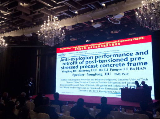 2019年12月10-13日,第2届中国-加拿大结构与地震工程论坛在广州举办。中国工程院周福霖院士、谢礼立院士、杜彦良院士、杨永斌院士及加拿大工程院Carlos E. Ventura院士、澳大利亚工程院郝洪院士等一批国内外知名专家及来自中加两国的30多个高校、科研机构的专家学者、研究生和减隔震企业代表共200余人参加了本届研讨会。会议由中国建筑学会结构减震控制专业委员会主办,广州大学工程抗震研究中心承办。国际减震控制学会理事、兰州理工大学防震减灾研究所所长杜永峰教授带领博士生参加会议。12月10日,杜永峰教授做了题为“Anti-explosion performance and retrofit of post-tensioned pre-stressed precast concrete frame”的大会学术报告,并应邀担任大会主题报告主持人。
