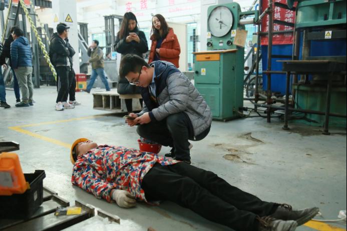 活动开始殷占忠副院长先对本次活动进行了简单介绍,随后田治学书记对本次活动的必要性进行了强调,最后实验中心罗维刚主任对科研实验中应该注意的安全问题进行了强调说明。实验中心王剑老师则对本次演练内容(触电后应急抢救)进行了说明。在王剑老师的指挥下,两名研究生进行了触电后的应急抢救演示:一名学生触电后,另一名学生第一时间切断电源并进行了心肺复苏抢救,随后拨打了120急救电话求助。整个演练按照应急预案有序进行,学生们增强了对安全问题的重视程度,并且熟悉了如何进行应急抢救工作。