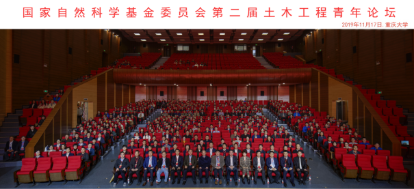 2019年11月16-17日,由国家自然科学基金委员会工程与材料科学部工程科学四处(以下简称国家然科学基金委)主办、重庆大学土木工程学院和重庆大学钢结构工程研究中心承办的国家自然科学基金委员会“第二届土木工程青年论坛”在重庆大学召开。中国工程院周绪红院士、杨永斌院士,国家自然科学基金委李大鹏处长、杨静处长,国家杰出青年基金获得者伊廷华教授、樊健生教授、何旭辉教授、翟长海教授、陈仁朋教授、王雪松教授、李永乐教授、胡少伟教授以及工程科学四处土木工程学科领域2019年结题的300余名青年和地区基金项目负责人参加了会议。我校土木学院周勇教授、殷占忠教授和毕贵权副教授参加了此次论坛。