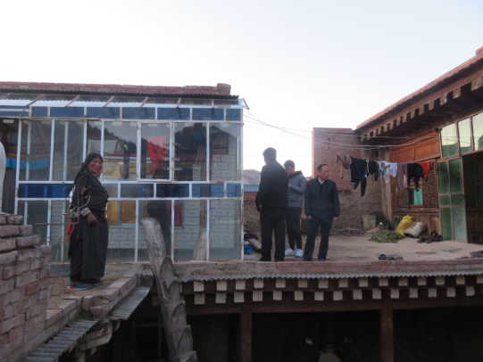 调研小组在震中附近的扎油乡格娄昂村群众家中查看房屋震害(一)