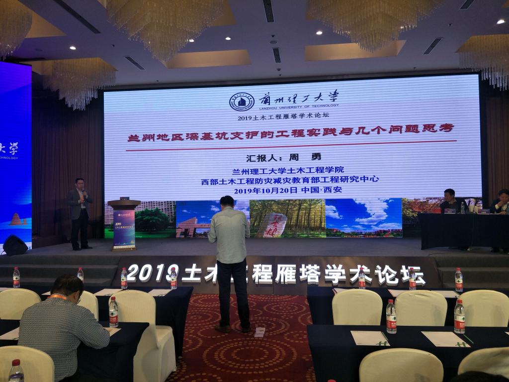 在学术报告环节,论坛共安排了39个特邀学术报告、17个学术报告、26个青年学者论坛报告。陕西省煤炭学会理事长、西安科技大学学术委员会主任、煤炭绿色开采地质研究院院长、中国工程院院士王双明作了题为“对煤炭主体能源地位与绿色开采的思考”的特邀学术报告;清华大学土木水利学院院长、中国工程院院士、清华大学土木大类首席教授张建明作了题为“大土木工程人才培养模式探索与实践”的特邀学术报告;新疆额尔齐斯河流域开发工程建设管理局局长、中国工程院院士邓铭江作了题为“构建三层级水循环调控及生态水利工程技术体系”的特邀学术报告。我校周勇教授应邀作了题为“兰州地区深基坑支护的工程实践与几个问题思考” 的特邀学术报告。