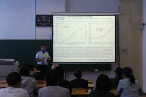 研讨会上,山西大学朱翔博士与我校李喜梅博士、朱前坤博士、杨国俊博士、景伟博士等青年教师代表、李虎等博士研究生代表就近期所完成的代表性科研成果做了介绍。Wada院士认真听取了各位青年教师及研究生的学术报告,并进行探讨和交流。报告完成之后,Wada教授对报告进行了点评,首先对各位青年学者的研究成果给予肯定,希望他们再接再厉,取得更好的学术成果;接着分享了一些他本人学习英语的体会,鼓励青年学者们利用中国人在语言学习上的天赋,学好英语、用好英语。