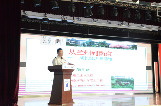闵凡路副教授作了题为《从兰州到南京》的报告,闵教授从自己在工大学习,攻读硕士博士学位以及工作经历等阶段,和大家分享了自己的成长经历,并给2019级同学提出了几点建议:一是希望同学们能够重视基础课程学习,尤其是专业课程;二是积极主动参与到学校组织的各项活动中,提高个人的综合能力;三是养成健康的学习生活习惯,多读有营养的书。尽早确立学习目标,并为之努力。