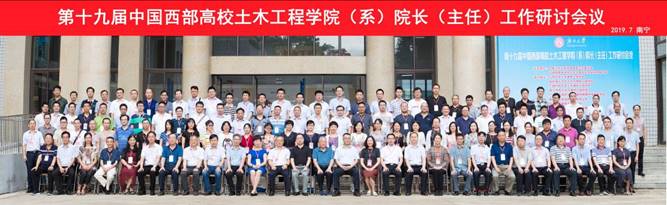 2019年7月7日至9日,由中国土木工程学会教育工作委员会、住建部高等学校土木工程学科专业指导委员会主办广西大学承办的第十九届中国西部高校土木工程学院(系)院长(主任)工作研讨会议在广西南宁市举行。来自全国西部的43所高校、5家出版社、2家企业的126余位特邀专家、中国土木工程学会教育工作委员会委员、专业负责人及相关老师代表出席了会议。我校土木工程学院周勇院长、马天忠副院长、建工系副主任吴长副教授和王永胜副教授参加了本次研讨会议。