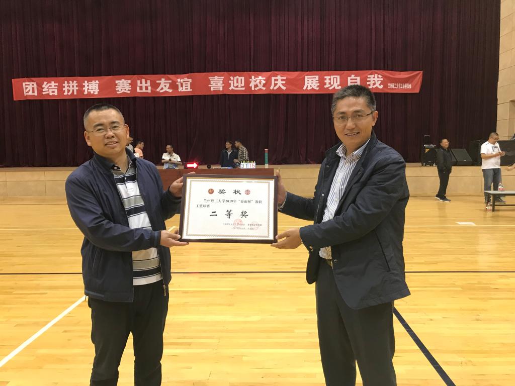 5月28日晚上兰州理工大学2019年教职工篮球赛冠亚军决赛在兰工坪校区体育馆如火如荼地进行。随着一声哨响,裁判把球往空中一抛,土木学院和后勤两队之间比赛正式开始,双方队员立刻展开了防守和进攻。赛场上,大家都激情高涨,你争我夺,你来我往,进攻、防守、暂停、罚球;球员们快速跑动,奋力拼抢,运球、传球、投球......凭借巧妙的传球,华丽转身,完美配合,展现出球员们严谨的比赛态度和团结协作的团队精神,赛场上留下了热情洋溢、活力四射的身影。两队比分交替领先。全体队员的精诚协作、顽强拼搏,最终土木工程学院代表队以小比分憾负对手,勇夺兰州理工大学2019教职工男子篮球比赛亚军。