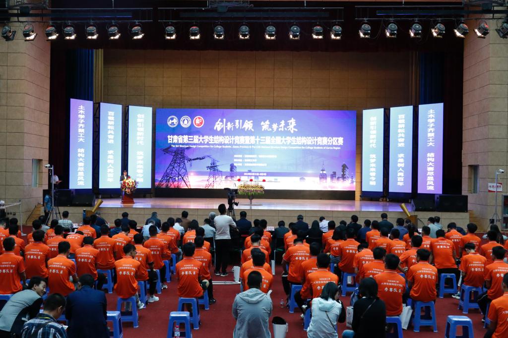 初夏金城结构竞赛聚各路英才,百年工大红柳披绣展工科底蕴。5月31日下午,由甘肃省教育厅和甘肃省土木建筑学会主办,兰州理工大学承办的甘肃省第三届大学生结构设计竞赛暨第十三届全国大学生结构设计竞赛分区赛在兰州理工大学兰工坪校区体育馆隆重开幕。甘肃省教育厅高教处张晓东处长,兰州理工大学副校长韦尧兵教授,甘肃省土木建筑学会理事长任春峰教授级高级工程师,甘肃省大学生结构设计竞赛委员会秘书长虞庐松教授、副秘书长蔺鹏臻教授,兰州大学土木工程与力学学院院长黄宁教授,西北民族大学土木工程学院院长曹万智教授,兰州理工大学教务处处长韩建平教授,兰州理工大学创新创业学院副院长冯辉霞教授,竞赛组委会成员以及包括兰州大学、兰州交通大学等省内设置土木工程专业的12所本科高校及设置建筑工程技术等土木相关专业的8所高职高专院校共计34支队伍,近300名师生参加开幕式。