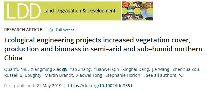 2019年5月,土木工程学院牛全福副教授带领的研究团队在国际期刊《Land Degradation & Development》上发表了题为“Ecological engineering projects increased vegetation cover, production and biomass in semi‐arid and sub‐humid northern China”的研究论文。《Land Degradation & Development》是农林科学和环境科学领域的顶级刊物,土壤科学领域JCR排名全球第一,其2018年影响因子达到7.27。