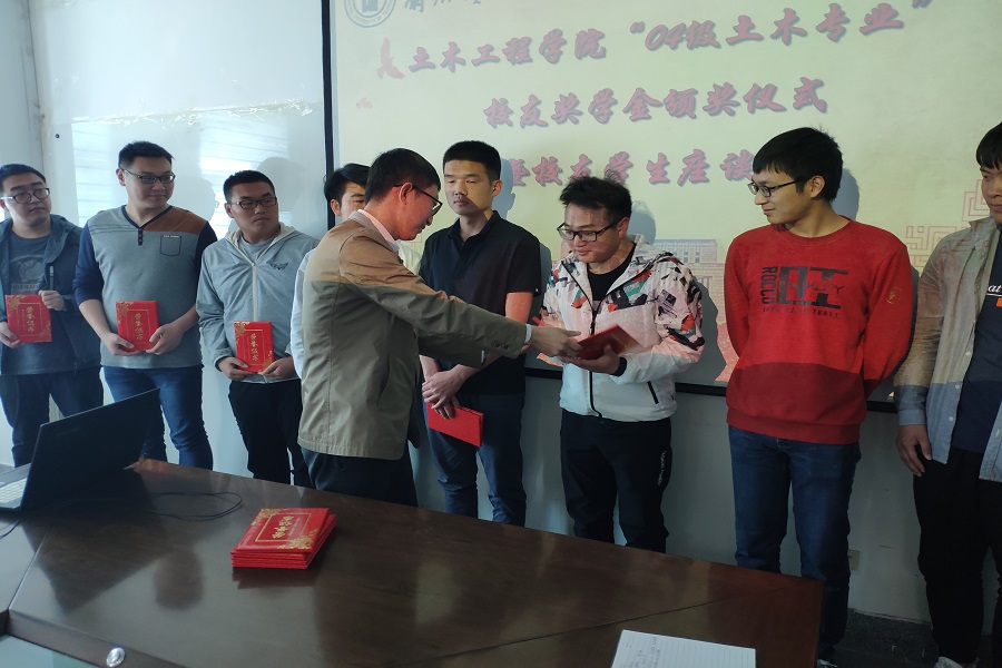 土木工程学院“04级土木专业”校友奖学金颁奖仪式暨校友学生座谈会于2019年5月20日下午4:30在兰工坪校区土木工程学院会议室召开,参与本次座谈会的有土木工程学院党委书记田治学,副院长李萍,何晴光副教授,04级土木专业校友柳明亮,学生办主任张海霞,辅导员张燕老师及获得本次奖学金的十名同学。