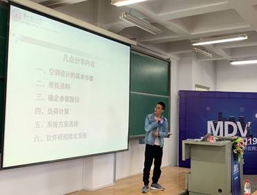 2019年4月16日下午,MDV中央空调公司在我校彭家坪校区1号楼205教室举行校园宣讲活动,同时也标志着第十七届MDV中央空调设计大赛学生组正式启动。大会有150余人参加。