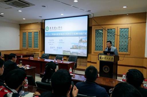马宏伟教授从结构健康监测在实际应用中的问题入手,结合中医号脉诊病的思想,重点就基于少量传感器信息的结构健康监测中的主要科学问题、桥梁地震台站功能的扩展和人工智能新方法在结构健康监测领域的探索和进展进行了报告交流。马宏伟教授建议同学们在做科研时将复杂问题简单化,用工程人员容易理解的语言去解释新技术,以便于新技术的推广与应用。他建议研究生在做科研时多追求其物理本质,对其问题进行深度理解,做出更好的科研成果。会后,马宏伟教授与与会师生进行了深入的交流,并对师生提出的问题进行了详细解答。此次报告对土木学院从事结构健康监测方面研究的师生具有重要的指导意义。
