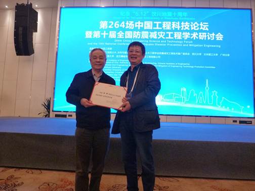 陈政清院士为西部减隔震推广应用优秀专家颁奖 (成都会场)