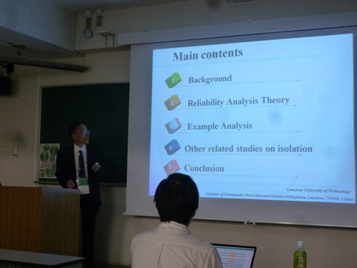 16日和17日,中日建筑结构技术交流委员会会议在神户大学举行了两天节奏紧张的学术报告会,包括介绍中日两国重大工程的4场主题演讲和60多场分会场报告和专题讨论等。16日下午,杜永峰教授代表团队做了题为“隔震结构反应谱及连续倒塌可靠度分析”的分会场学术报告,并担任“建筑隔震技术”分会场的主持人。