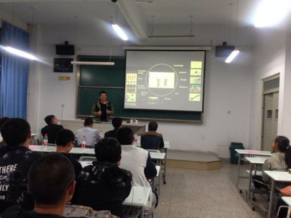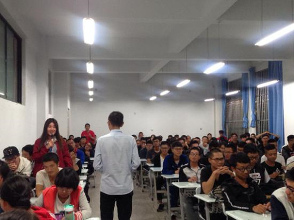校友钱生泽结合自己的工作经历和社会经验,告诉大家首先要学好基础知识,其次要有“不为失败找理由,要为成功找办法”的心态,才能在工作中得心应手。互动环节,同学们纷纷表达自己的大学理想,钱生泽总结并告诉大家一定要有长远的目标。他通过一些照片和视频的展示,详细的介绍了自己的工作情况,使同学们对自己专业有了更清楚的认识。