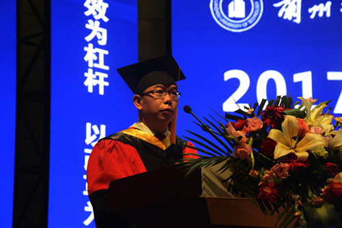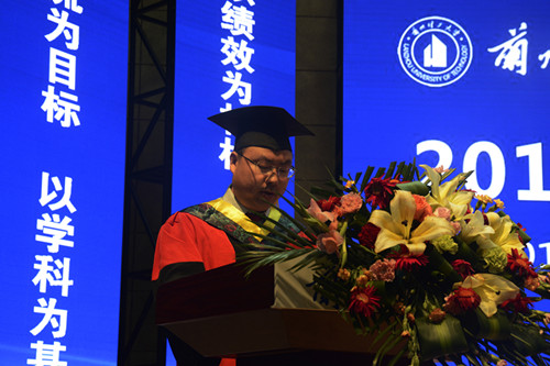 周勇教授代表学院向圆满完成学业的同学们表示最热烈的祝贺!向为同学们的成长倾注了无数心血的各位领导、老师、家长们表示衷心的感谢,并为同学们踏上新的征程提出了三个建议:第一,要有一个“好谋划”;第二,要有一个“好身体”;第三,在今后的学习工作中一定要勤勉。并寄语2017届毕业生:“希望同学们离开母校后,能够继续关注和支持母校的发展,将自己的人生经历和感悟分享给学弟学妹们,铭记“奋进求是”的校训,秉承、弘扬 “艰苦奋斗,自强不息,求真务实,开拓创新”的“红柳精神”,在工作岗位上兢兢业业、博采众长,在求实中创新,在创新中发展。”