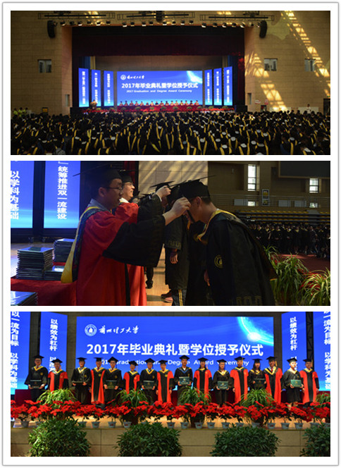 学院希望大家在以后的学习工作中能够脚踏实地,不耽空想,不鹜虚声,从点滴做起,踏踏实实做好本职工作,一步一步实现心中理想。在大众创业、万众创新的时代潮流中,善于继承、勇于创新,实现成功。希望大家遵循修身律己、厚德待人的处世哲学。以敬畏之心修身律己,以感恩之心厚德待人,永远做一个“奋进求是”的工大人。