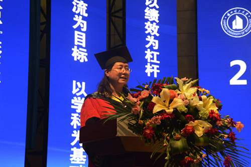 仪式在庄严的国歌声中拉开帷幕,毕业生代表曹亚峰同学代表2017届全体毕业生,向母校表示了崇高的敬意,向老师们表示了衷心的感谢。教师代表王秀丽教授代表学院全体教工,为毕业生送上了深深的祝福,希望同学们走出校园之后常怀感恩之心,在今后的工作岗位上继续发扬“土木人”的优良传统,努力工作,以报答学院的培育之恩。