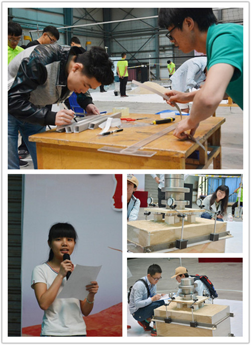 本次竞赛共有120名学生报名参赛,分为初赛和决赛两个阶段。5月7日,通过初赛选拔,全校54名同学组成的18支参赛队入围决赛。参赛内容包括模型设计、模型制作和模型测试三个环节,参赛队伍要在120分钟内完成模型制作,并接受逐级加载测试,评委会根据模型设计报告、承载能力、模型自重和模型制作耗时给出最终成绩。经过激烈的角逐,由吴丽容、王扶云、秦攀组成的代表队凭借出色的结构设计、良好的承载能力和较短的时间消耗获得了一等奖。