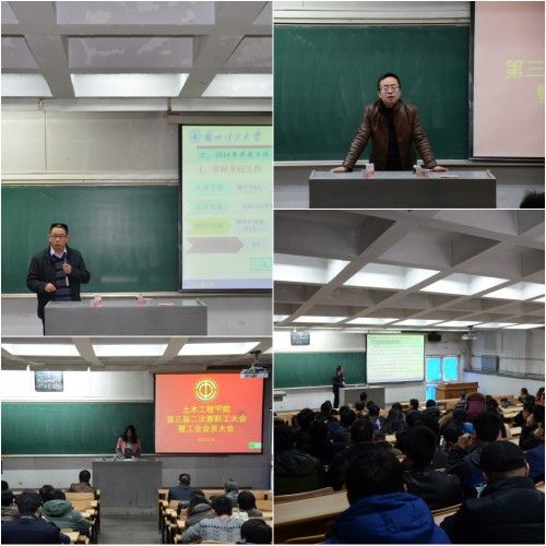会上,院长周勇向全体教职工作了2016年度工作总结及2017年度重点工作报告,全面回顾了学院2016年在学科、教学、科研、实验室建设、研究生教育、师资队伍建设、学院党建、学生教育管理、校友等方面所做的工作和取得的成绩,总结分析了学院发展当前所面临的主要问题和机遇,明确了学院2017年发展的努力方向和主要工作思路。报告强调,2017年是“十三五”规划的重要一年,学院以人才培养为中心,以学科建设为主线,以师资队伍建设和学科平台基地建设为重点,围绕学校创建高水平大学发展战略,学院将立足现实,开拓创新,狠抓教学、科研、学科建设,以为经济建设和社会发展提供高素质人才、高水平的科研成果、高质量的科技服务为标志,突出工程人才培养特色和地域学科特色,努力把学院建设成在全国土木工程学科领域有明显特色,在西北地区土木工程界有较大影响的教学科研基地,成为甘肃省乃至西北地区土木工程界的人才培养、科学研究和技术服务中心,实现土木类专业水平达到全国先进水平的目标,使土木工程学院成为学校“一流工科”的重要支撑。