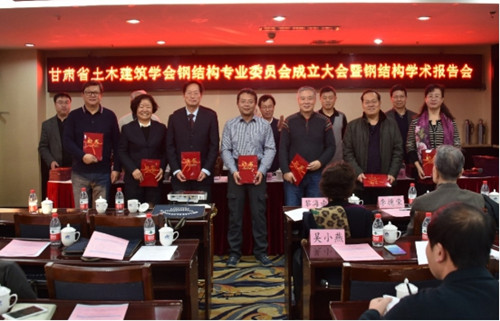 成立大会上,土木建筑学会秘书长刘胜教授级高工宣读了甘肃省土木建筑学会《关于钢结构专业委员会换届报告》的批复文件,明确新一届钢结构专业学术委员会挂靠单位为兰州理工大学,王秀丽任主任委员,陈天镭、吴小燕、张举涛、李大军任副主任委员,殷占忠任秘书长,梁亚雄,吴长,赵吉川任副秘书长,委员共计50名,并聘请全国15名知名专家为顾问。由特邀嘉宾为为新当选的委员现场颁发了聘书。新任副秘书长梁亚雄、吴长分别宣读了《钢结构专业委员会章程》和来自省外钢结构委员会的贺信。土木建筑学会刘胜秘书长进行了热情洋溢的讲话,他特别突出了钢结构专业委员会的组成特色,也希望新一届钢结构专委会为甘肃钢结构发展发挥更大的作用。