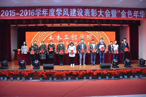 表彰大会上,学院党委书记吴学楷宣读了《关于表彰兰州理工大学2015-2016学年度学生先进集体和先进个人的决定》,殷占忠副院长宣读了《关于表彰土木工程学院2015-2016学年度学生先进集体和先进个人的决定》,大会对过去一年里学风建设中涌现出的优秀集体及个人进行了表彰。