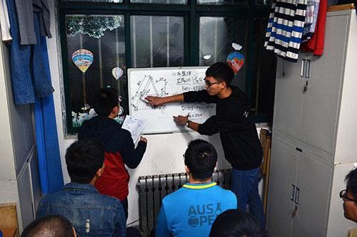 15级国奖获得者程贤军在宿舍讲解理论力学