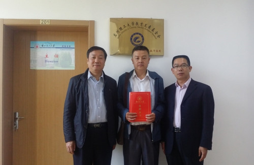 刘全恩主任(左一)、周勇院长(右一)和校友捐赠代表合影