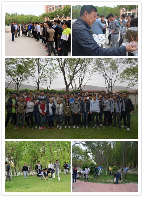 5月6日下午,学院中干联系班级系列活动之“树立环保意识,培养劳动品质”主题活动在西校区展开,后勤服务集团高副总经理高宝年与15级建筑环境与能源应用工程一班的同学们参加了本次绿色校园行动。下午4时许,建环一班的同学与高总齐聚红柳广场,高总首先动员讲话倡导大家一起体验学校后勤保洁员的工作,在劳动中树立环保意识,不要给后勤工作人员增加负担,同时培养良好的劳动品质。高老师的观点得到了同学们的一致赞同。他为大家分发保洁用的手套和塑料袋,从北村的核桃林到南村的宜海湖畔,从东边的中北路花园到西大门的“游标卡尺”,校园里处处隐现同学们勤勤恳恳的身影和热情洋溢的笑脸。一次一次的弯腰,一次一次的把垃圾装进袋子里,体现了理工大人的干练耐劳的品质。