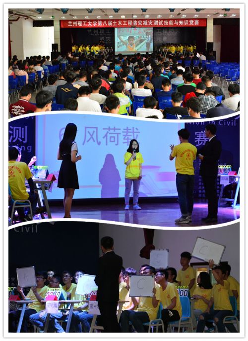 5月8日下午,由兰州理工大学和省抗震办主办的兰州理工大学第八届防灾减灾测试技能与知识竞赛在西校区大学生活动中心举行。出席本次活动的嘉宾有省抗震办公室张睿主任、省减灾委办公室常务副主任、省民政厅救灾处辛广楠处长、中国信达资产经营集团兰州公司许振铎经理、河北华研卓筑集团兰州分公司杨磊总经理等。土木学院党育副教授、崔凯博士分别担任竞赛的裁判长和副裁判长,程选生教授、丑亚玲教授、殷占忠副教授等及从事防灾减灾研究的部分教师组成竞赛裁判组。学院部分教师和500余名本科生、研究生现场观看了此次比赛。